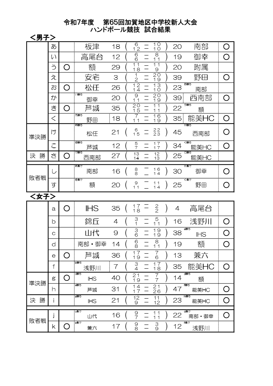令和6年度第64回加賀地区中学校新人大会 ハンドボール競技